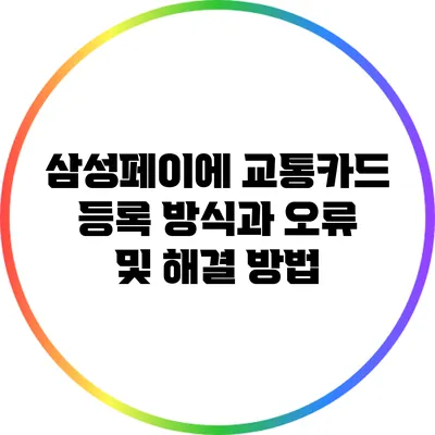 교통카드를 스마트폰으로 간편하게 이용할 수 있는 시대가 도래했습니다. 많은 사람들이 삼성페이를 통해 교통카드를 등록하고 사용하고 있지만, 이 과정에서 여러 가지 오류가 발생할 수 있습니다. 이번 포스팅에서는 삼성페이에 교통카드를 등록하는 방법과 자주 발생하는 오류 및 그 해결 방법에 대해 자세히 알아보도록 하겠습니다.
