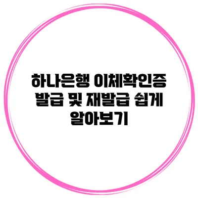 이체를 하고 나면 꼭 필요한 서류가 바로 이체확인증이에요. 이체확인증은 금융 거래의 증명서로서, 필요한 순간에 소중한 자료가 될 수 있습니다. 그래서 오늘은 하나은행에서 이체확인증을 발급받는 방법과 재발급받는 절차를 자세히 알아보겠습니다.
